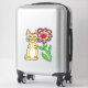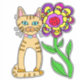 Whimsical Folk Art Cat and Colourful Flower Sticker .