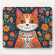 Whimsical Folk Art Cat and Flowers Mouse Pad