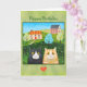 Whimsical Folk Art Cats Custom Message birthday Card