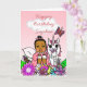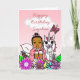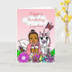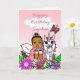A pretty African-American, Hispanic, Hawaiian, Latino girl fairy and whimsical folk arr flowers and butterflies card for a little girl. personalize it by adding the child's name in the customize area. Coral, Pink, purple, yellow, teal, and all different beautiful bright happy colours.