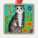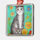 Whimsical Folk Art Grey Cat and Kitten Metal Ornament