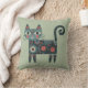 Whimsical Folk Art Retro Boho Cat Sage Throw Pillow