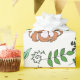 Whimsical blue flowers, a rabbit and forest leaves make a pretty gift wrap for a child or even an adult