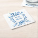 Whimsical French Blue Botanical Crest Wedding Square Paper Coaster