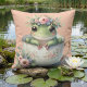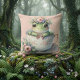 A charming green frog peeks out of a delicate porcelain teacup adorned with soft pink blossoms and gold trim, crowned with a wreath of pastel florals and a tiny royal crown. This endearing scene blends fairytale whimsy with cottagecore elegance, evoking gentle nostalgia and playful storybook vibes. Rendered in a dreamy watercolor style, this sweet composition captures the magic of tea parties and nature’s smallest royalty. Ideal for lovers of frogs, florals, and vintage flair. AI generated artwork.