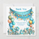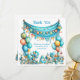 This charming thank-you card is perfect for expressing gratitude with a touch of whimsy and joy. Its vibrant teal color and playful design make it ideal for birthdays, especially for children. It's a delightful way to say thank you in a memorable and heartwarming style.