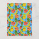 Whimsical Funny Fruit Salad Pattern Blue Postcard