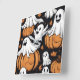 Whimsical ghosts playing among Halloween pumpkins Square Wall Clock