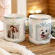 Spread seasonal cheer with this elegant and customizable coffee mug. Featuring three photo cutouts styled as hanging ornaments with pastel bows, this design is perfect for showcasing your family, children, and even your furry friends. The clean white background highlights the festive message, “ Happy Holidays,” in graceful script. A modern yet heartwarming way to send love and joy to friends and family this holiday season.