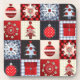 Whimsical Gingham Christmas Quilt design in blues and reds and off white - Cute Christmas trees, ornaments and snowflakes decorated with cute buttons and with gingham and polka dots as the backgrounds for the squares. A favourite Christmas design for farm folks and country cabin families. NO real buttons or quilt fabric is on this product, it is artistically created to look like a quilt.