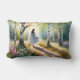 Whimsical Girl Dancing Through Birch Forest Lumbar Pillow