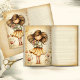 The soft golden dress, muted earthy palette, and hand-painted floral accents give this design a gentle cottagecore charm while maintaining an antique paper aesthetic. Her serene expression and windswept hair add a dreamy sense of movement, making this page a beautiful focal piece for journaling and creative paper projects.