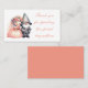 Express your gratitude in the most charming way with this whimsical gnome wedding thank you place card. Featuring a delightful watercolor illustration, this design showcases a joyful gnome bride and groom, dressed in a romantic blend of soft orange and grey tones. The bride’s flowing pink gown and floral crown perfectly complement the groom’s dapper suit and signature pointed hat, creating a fairy tale-inspired look that adds warmth and charm to your wedding table decor.