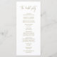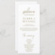 This whimsical gold calligraphy wedding program is perfect for a modern wedding. The design features elegant yet rustic golden typography for a simple minimal look. Include the name of the bride and groom, the wedding date and location, thank you message, order of service, bridal party and an optional "in loving memory" memorial.