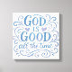 This design features the uplifting phrase "God is Good all the time," elegantly rendered in a flowing typography. Surrounding the text are whimsical doodles brought to life with blue and purple watercolors. The soft shades of blue and purple blend harmoniously, creating a calming backdrop that invites reflection and peace.