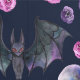 Add a touch of mystical charm to your walls with this enchanting watercolor wallpaper featuring a captivating pattern of vibrant pink and purple roses, mystical moons, and spooky bats. Perfect for creating a unique and whimsical ambiance.