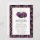 Purple, gold and black gothic virtual long distance bridal shower by mail invitation featuring roses and a potion bottle pattern.