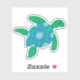 This sticker is of a cute whimsical green and blue sea turtle.