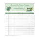 Colourful sewing business sales receipt note pad done in white, with a light green header, at the top, with a green and gold sewing machine and green and gold flowers, on other left side. Personalize the text to read anything you want.
