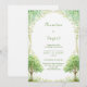Set a serene and magical tone for your big day with this light-filled botanical composition. The design features a pair of delicate watercolor tree motifs anchored at the bottom, their branches laden with soft lime green foliage and tiny white blossom clusters. An overhanging arch of climbing vines and greenery frames the top, creating a natural window against the airy, minimalist background. The hand-painted texture and soft color palette evoke a sense of fresh, organic elegance. This wedding invitation is an ideal choice for an outdoor garden ceremony, a rustic woodland celebration, or a minimalist botanical-themed event. It ensures your announcement feels as light and enchanting as your love story from the moment it is received.