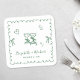 Whimsical Green Wavy Frame Wedding Square Paper Coaster