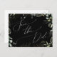Whimsical Greenery Black and Gold Save The Date Invitation Postcard