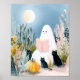 Whimsical Halloween Book Lover Ghost Black Cats Poster