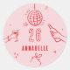 Pink and red whimsical hand drawn editable age birthday drinks cocktail disco ball bow coquette party favour sticker design.