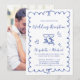 Whimsical Hand Drawn Blue Photo Wedding Reception Invitation
