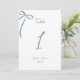 Celebrate your wedding in style with our whimsical hand drawn bow dusty blue wedding table number. This design features our original hand drawn bow illustration and hand written typography, a unique addition to your modern vintage inspired wedding or special events. All details in the invitation are editable including text, illustration, background and text colour.