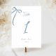 Whimsical Hand drawn Bow Dusty Blue Table Number
