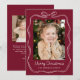 Whimsical Hand-Drawn Bow Frame Burgundy 2 Photo Holiday Card