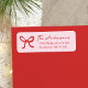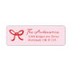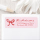 Send cheerful holiday mail with these return address labels featuring a hand-drawn red bow and matching red lettering on a soft blush pink background. Your family name and return address are displayed in elegant handwritten script, making this whimsical design a charming choice for Christmas cards, holiday party invitations, and seasonal correspondence.