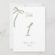 Celebrate your wedding in style with our whimsical hand drawn bow sage green wedding table number. This design features our original hand drawn bow illustration and hand written typography, a unique addition to your modern vintage inspired wedding or special events. All details in the invitation are editable including text, illustration, background and text colour.
