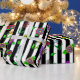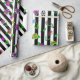 Pretty hand drawn whimsical flowers, red, purple, pink, sage green, teal and yellow floral design with black and white stripes birthday or wedding gift wrap.