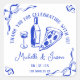 Unique blue whimsical Hand Drawn and hand written Contemporary Retro French Fun save the date with a bow frame, a whimsical trendy artwork for your french wedding by Savanamm