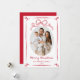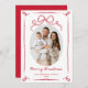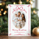 Share holiday joy with this whimsical Christmas photo card featuring your favorite photo framed by a flowing red ribbon border. A ribbon bow accents the top of the design above an oval photo area, while “Merry Christmas” appears below in a handwritten red script with your family name and the year shown underneath. The back includes a second photo with space for a personal message, creating a warm and festive keepsake perfect for sharing with loved ones this season.