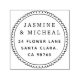 A cute return address stamp with a round hand-drawn border. The whimsical scalloped frame surrounds the text - the couple's names in serif capitals, and their return address in bold typography below. This design can be edited to showcase two names, a family name, an individual's name, or a business name. Ideal for party invitations, greeting cards, thank yous, gifts, and more. This is a self-inking stamp - the wooden version of this design is available in the collection linked on this page. Visit my store for more return address stamp designs.