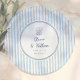 Whimsical Handdrawn Retro Blue Stripes Wedding Paper Plate