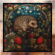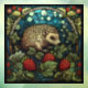 Whimsical Hedgehog & Raspberries Stained-Glass Window Cling