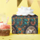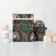 This wrapping paper features an adorable hedgehog nestled at the center of a lush, vibrant floral arrangement. The intricate design showcases a mix of teal, orange, and golden hues, with delicate flowers and foliage swirling in a harmonious pattern. Perfect for nature lovers and those who adore charming woodland creatures, this wrapping paper adds a whimsical and elegant touch to any gift.