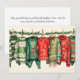Brighten up your holiday greetings with this whimsical design showcasing red, green, and cream Christmas sweaters hanging from a clothesline. Each sweater is adorned with playful decorations, adding a fun and festive touch to your holiday cards.