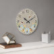A cute honeybee design of a bee and flowers over a honeycomb background decorates this whimsical clock.