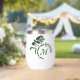 An illustration of a whimsical hooded grasshopper with facial hair. The insect is perched on grass. The grass is curled down in circle shape make a frame around a M. M is short for monogram and can be personalized for your own initial.
