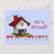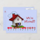 Customized "We've Moved" Postcard: Cute, Brightly Coloured House and Flowers Illustration