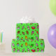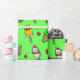 Lime green hand drawn whimsical cartoon ice cream, cherries, ice cream bars, ice cream sundaes, banana splits birthday gift wrap.