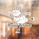 Adorable holiday window cling features hand drawn whimsical ice skating snowman and customizable text