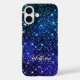 Whimsical stylish iridescent blue Glitter monogram girly Iphone case. Inspired by the night sky, this iPhone case has a holographic design with faux glitter in starry shades of blue and Grey. The iridescent sparkle effect creates a celestial look, adding a girly and mystical touch to the phone.