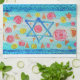 Decorate your home with Jewish Joy! Brighten up your kitchen and home with this adorable towel, featuring a whimsical, colourful Israeli flag with swirls, roses and hearts.