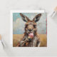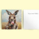 Spread some summer cheer with this charming and artistic "Kangaroo Eating Ice Cream" holiday card. The front showcases a high-fidelity, impressionist-style oil painting with rich, visible brushstrokes, depicting a kangaroo holding a pink ice cream cone against a soft, sun-drenched outback sky. This square-format card is fully customizable; while the vibrant artwork makes a bold statement on the front, the interior is pre-formatted with a clean "Happy summer holidays!" message that you can easily edit or replace with your own personalized note. It is a perfect choice for those looking to send a unique, artisanal greeting that combines wildlife character with a playful summer vibe.